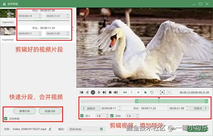步骤3:直接点软件里的红色方块结束录制,然后会自动跳到预览窗口,这里能直接剪掉开头结尾多余部分。要是你想给视频加点特效,就得打开 “高级剪辑” 了。