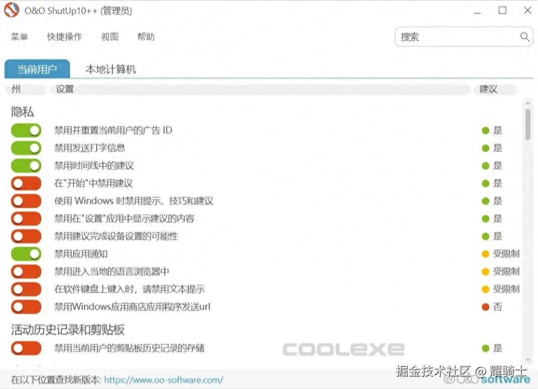 1.隐私优化——O&O ShutUp10
