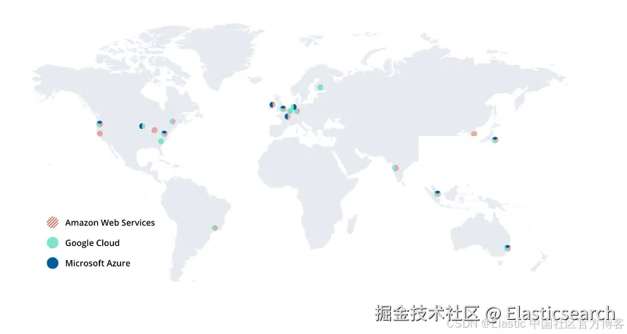 相比之下,Elastic 在包括微软、谷歌和 AWS 在内的多个云服务提供商中,提供覆盖 40 多个地区的 Elastic Cloud,内置对多云和本地环境的集成。