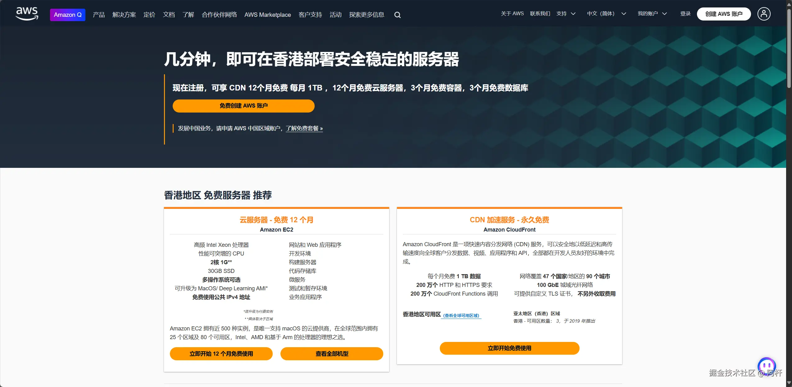 尤其是亚马逊云现在还可以免费体验一年的香港云服务器,那还说啥啦,冲就完了 官网链接。