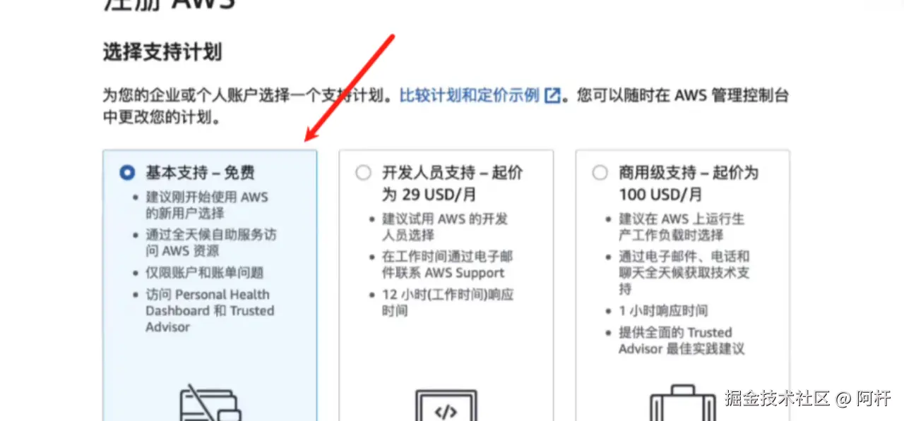 最后一步就是选择支持计划,我们一般选第一个就行了: