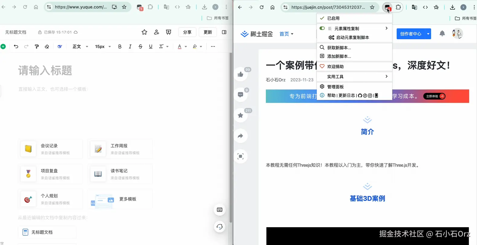 大家好,我是石小石!一个热爱技术分享的开源社区贡献者,小册《油猴脚本实战指南》作者。