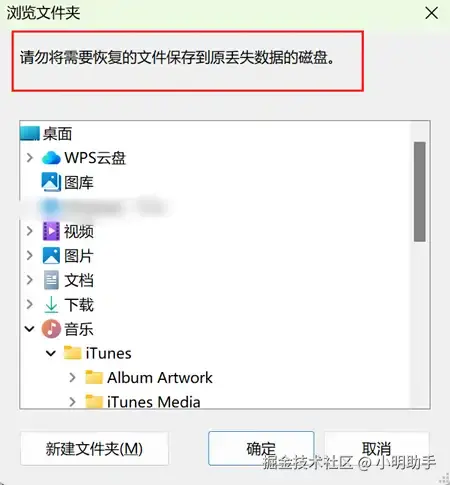 步骤3: 在弹窗中选择自己恢复文件的存放位置。