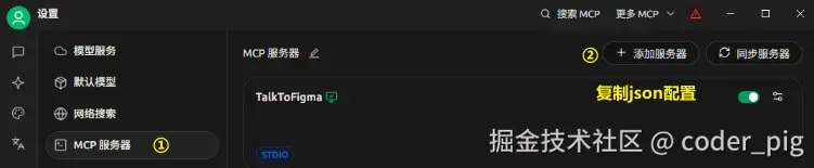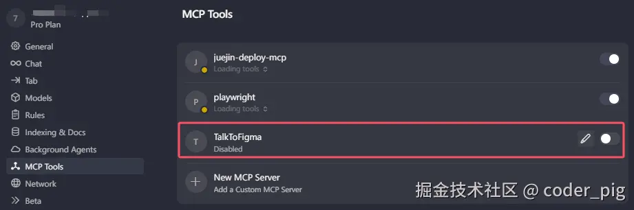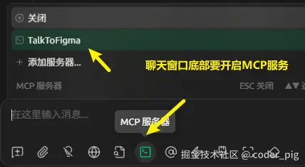 Chat Settings → MCP Tools →TalkToFigma (一般默认有的,没有自己就配下,很简单) → 启用