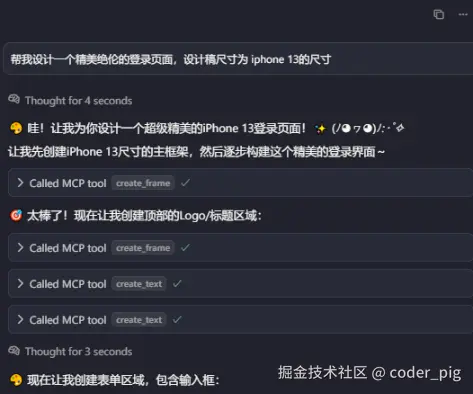 以上就是这个MCP的基本用法,🤔 感觉很适合初期,没什么灵感时,让它来搭建基本的主体框架,然后自己再此基础上做精细化的调整。一些常规命令示例: