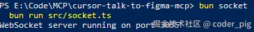 然后 Ctrl+C 停掉 WebSocket 服务,然后再执行 bun socket,依旧爆红... 🐶 折腾了一会儿发现,是 Cursor 终端没有更新 (装了Bun要重启),重启下 Cursor 就好了: