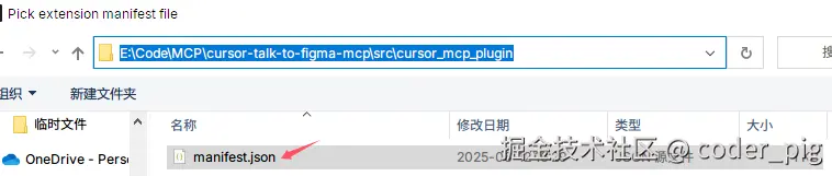 然后按照下图中的路径选中 manifest.json 文件: