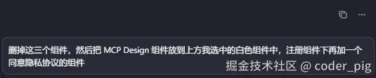接着让它删掉这三,移动下组件,添加一个同意隐私协议的组件: