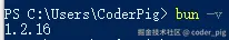 安装完,重启下 PowerShell,键入 bun -v 查看版本号,确定是否安装成功: