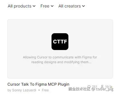 🐶 也可能不太符合我们的场景,直接在它的 插件商店 搜了下,发现这个:Cursor Talk To Figma MCP Plugin