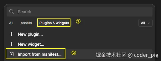 底下会有弹窗,依次点击:Plugins & widgets → Import from manifest..