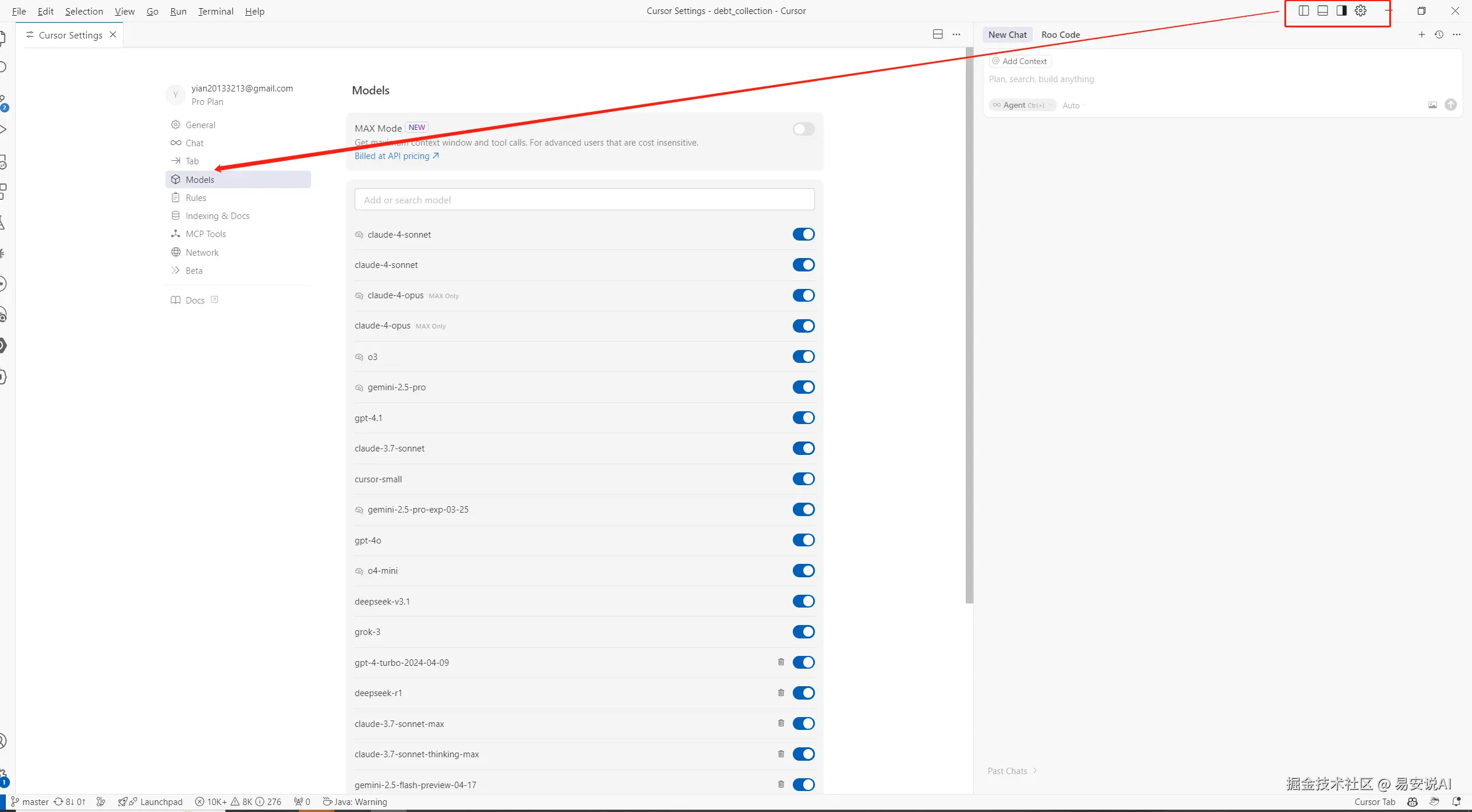 点击右上角设置按钮,选择模型:models