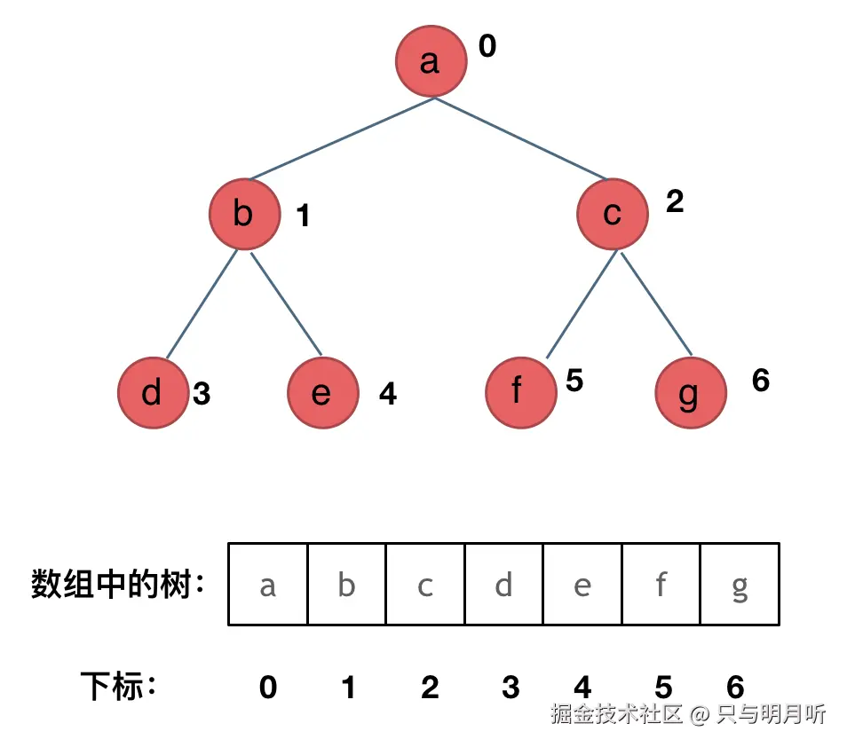 上面说的只是索引,也就是在数组中的位置,这个索引和二叉树的值没有任何关系,只是在将数组转成二叉树时,会根据索引来确定节点关系,比如跟节点索引是0,那么它的左孩子索引必然是i^2+1,也就是1,右孩子就是i^2+2,也就是2,当然这里的1和2,就是索引,取得就是数组中对应索引的值。