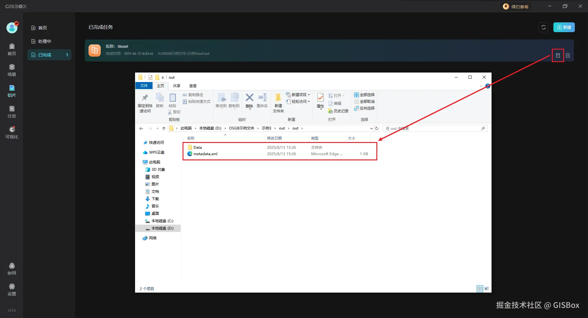 切片任务处理完毕后点击右侧 “打开文件夹” 按钮,可以查看转换后的文件,如下图所示:
