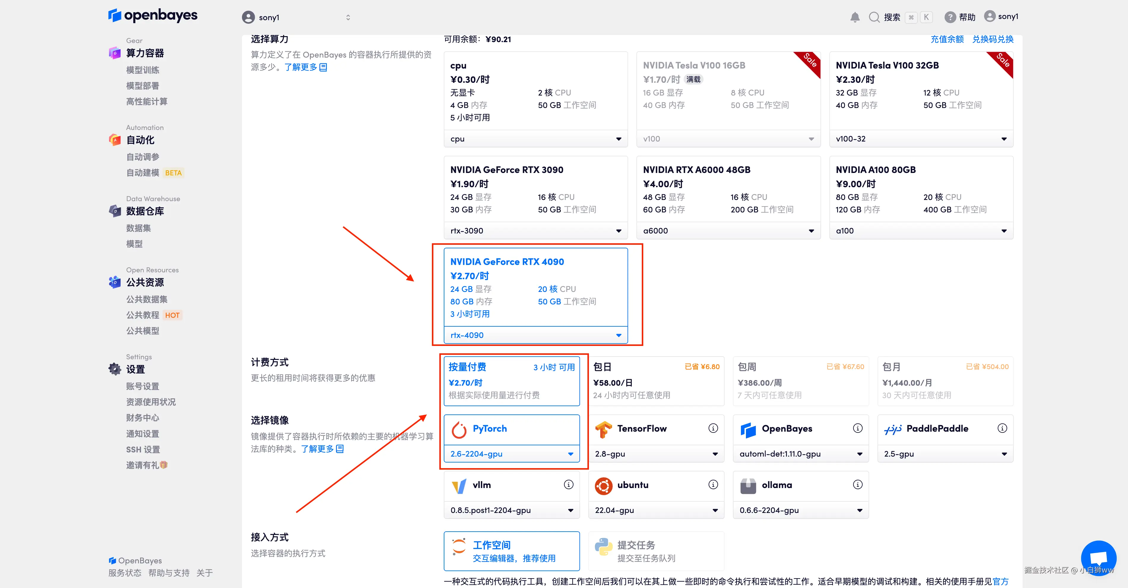 使用云平台: OpenBayes