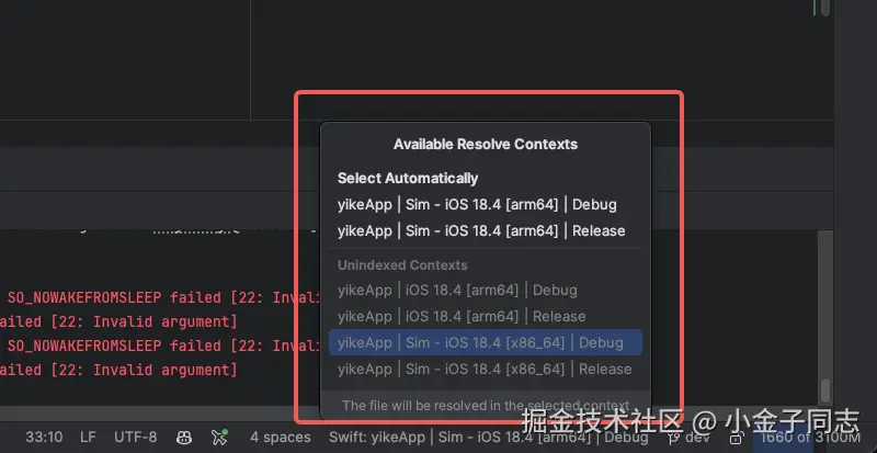 另外在编辑器的下方增加了快速切换 iOS 项目 build 类型的功能