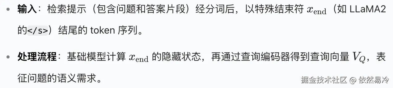 - 检索提示(Retrieval Prompt) :包含问题(Query)和答案片段(Answer Fragment),经基础模型的查询编码器(Query Encoder)处理得到查询向量(Query Vector) 。