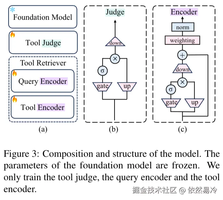 所以整个过程就能在冻结基础模型参数的前提下,只对tool judge、query encoder和tool encoder进行后训练。