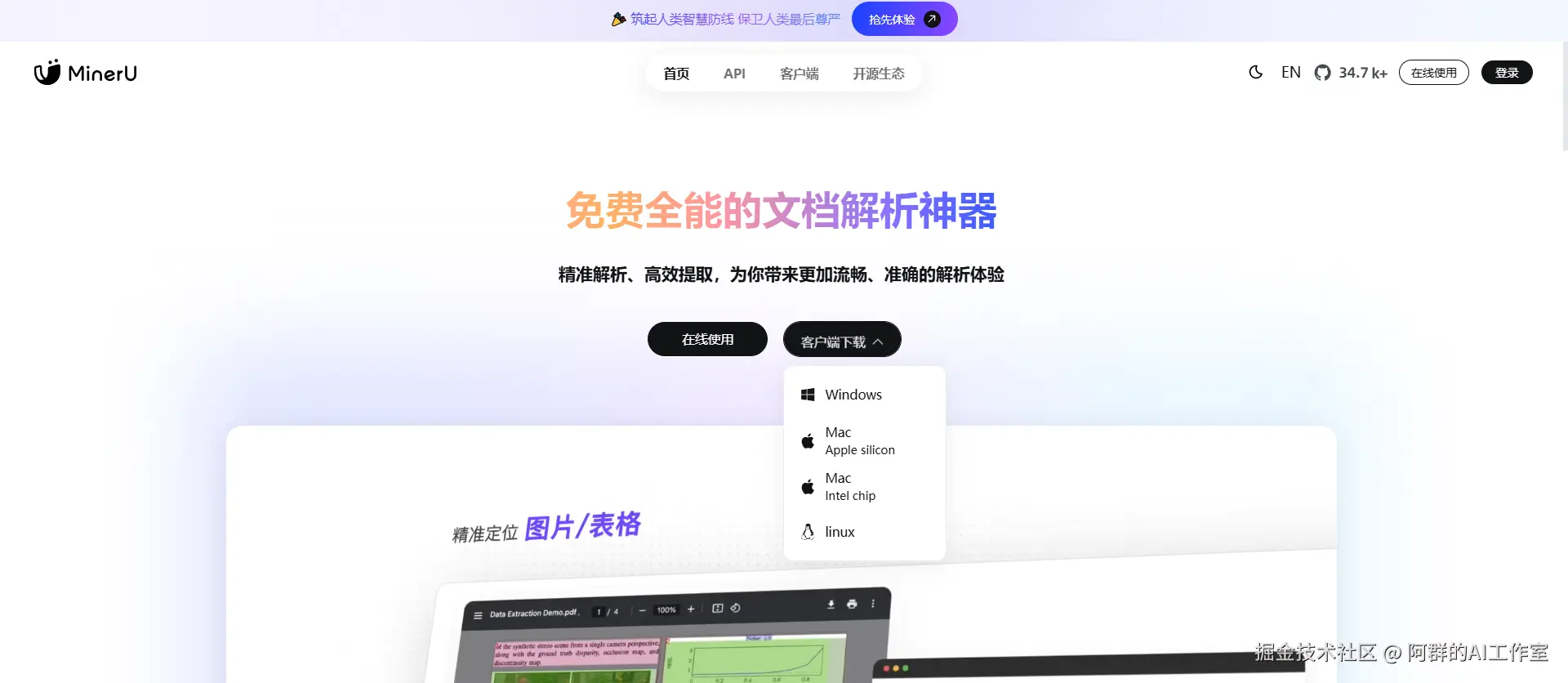 我们今天用的是MinerU(建议使用客户端)
