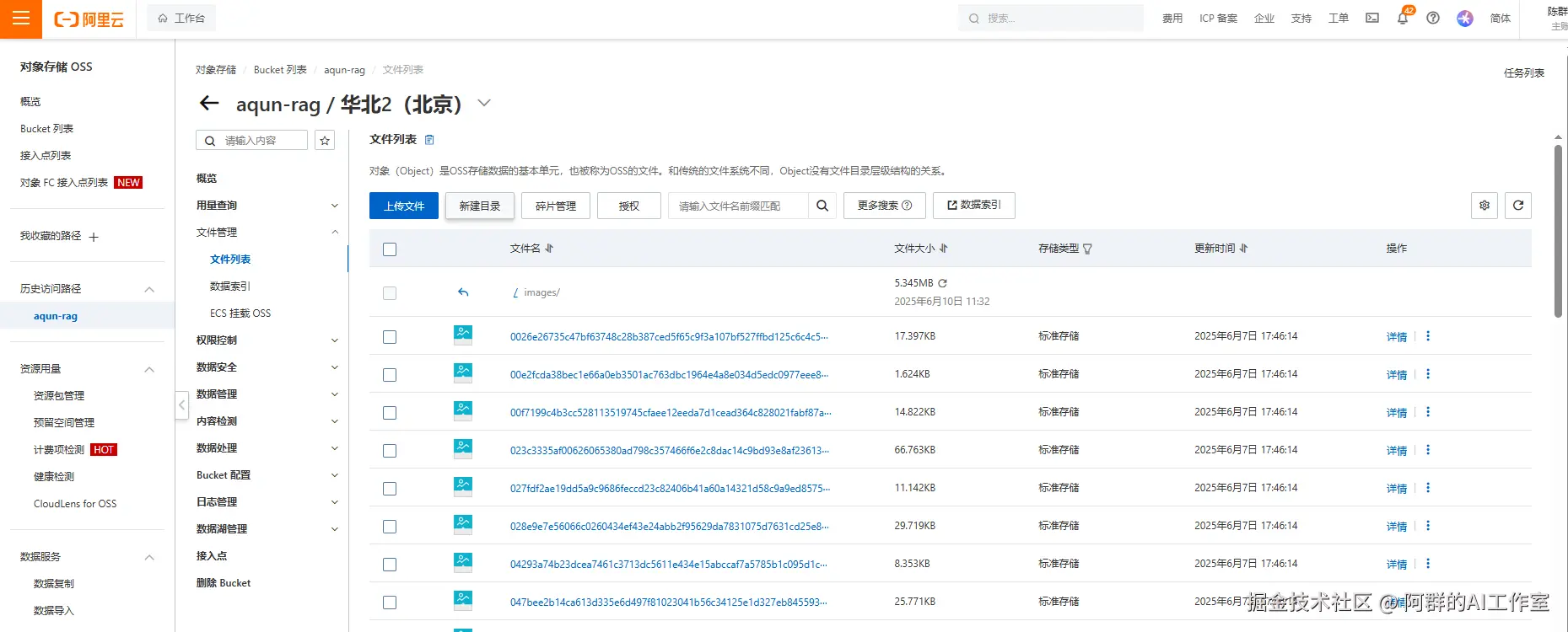 我们把图片的文件夹直接上传到创建好的阿里云的Bucket列表中,速度很快~