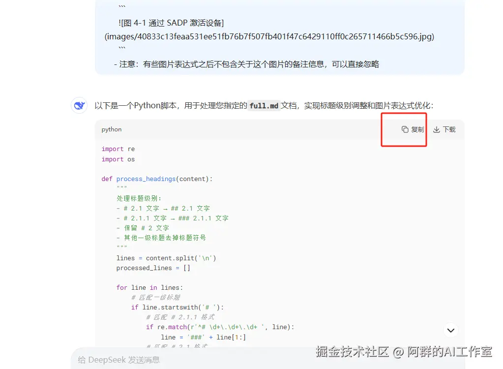 我们让deepseek撰写脚本,脚本撰写完之后复制代码