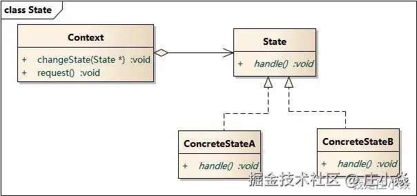 状态设计模式的实现方式主要依赖对象状态的封装和状态间的转换控制。以下是标准实现方式及其在 Java(或类似面向对象语言)中的常见实现结构。