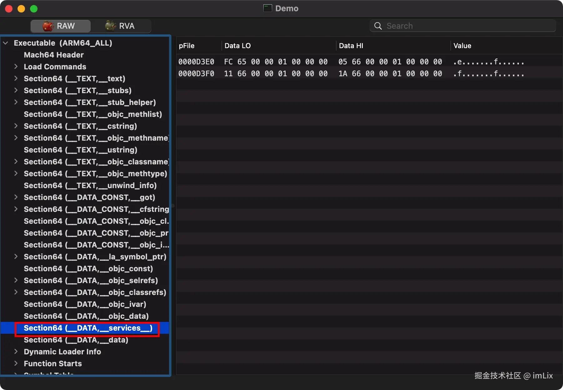 我们使用 MachOView 工具查看 Mach-O 可以看到我们存储的数据: