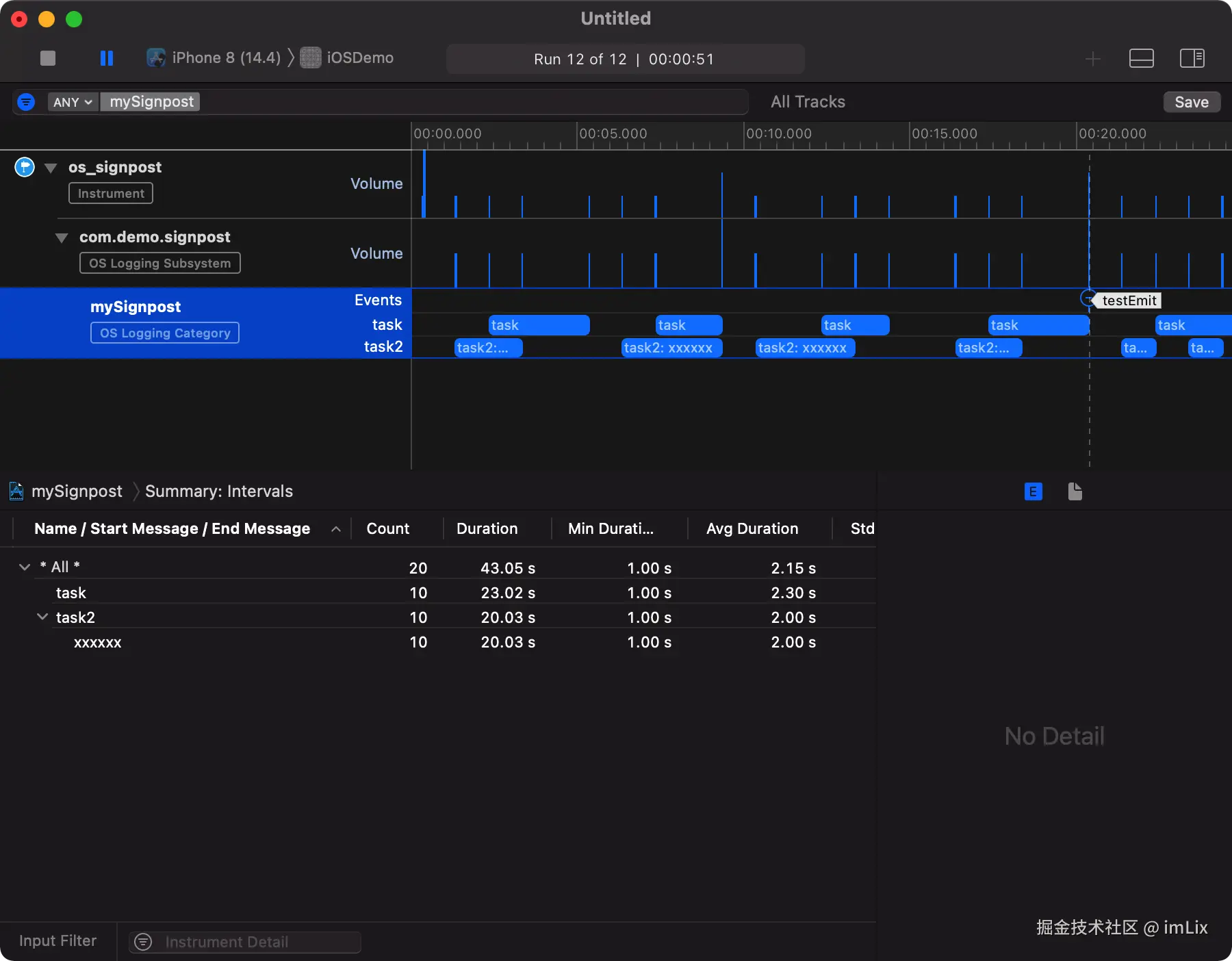 - 通过 Xcode --> Open Developer Tool --> Instruments --> APP Launch 启动应用,App Launch 会启动应用 5 秒后自动关闭应用。