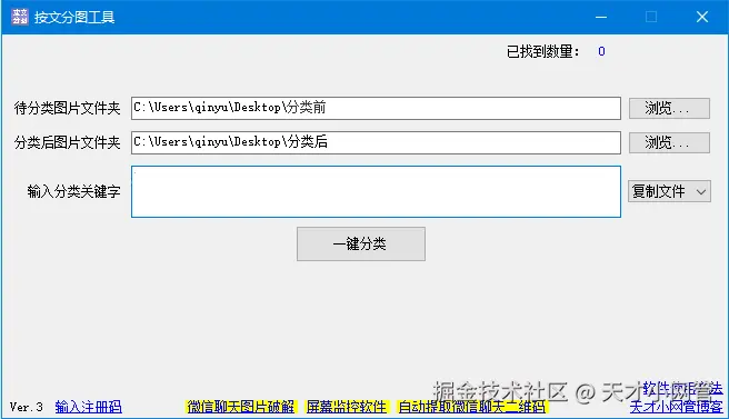 在有些日常工作中,经常会接收到某种类型的非常多的图片,然后要按图片上的文字,对这些图片做分类,比如水印机机拍的、环卫工人巡街拍的、甚至是卫星拍的图片,就有不少特定特征的文字,可以用本文章的方法,通过区分图片上文字的方法,快速分类。