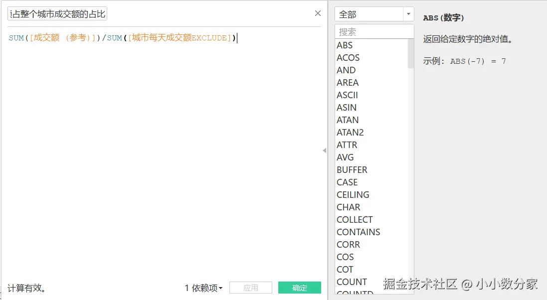 SUM([成交额 (参考)])/SUM([城市每天成交额EXCLUDE])