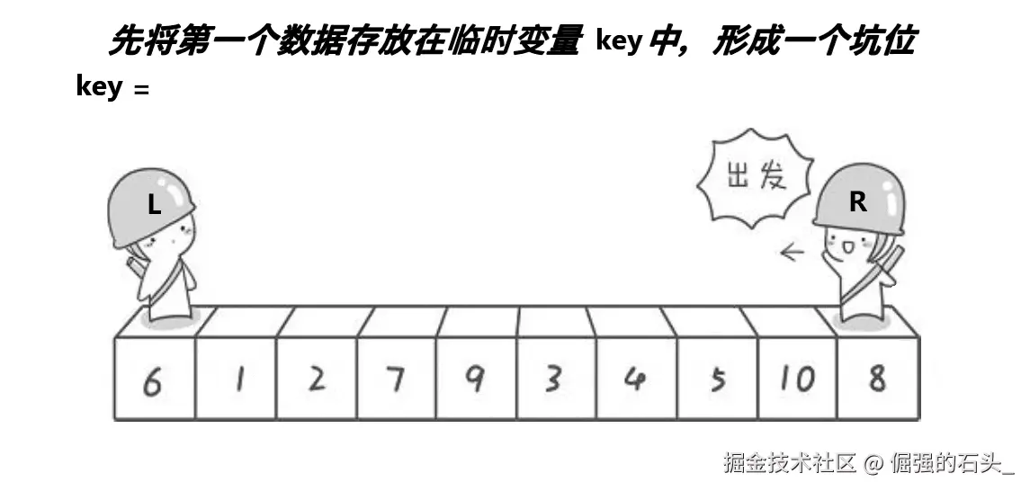 a[left]作为基准值,并将该位置的索引存储在keyi变量中。虽然这个索引在后续操作中没有被直接用于交换,但它用于在分区结束后确定基准值的最终位置。 -