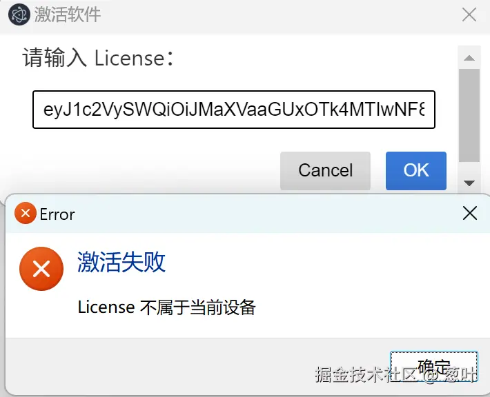 dialog.showErrorBox("激活失败", "License 不属于当前设备");