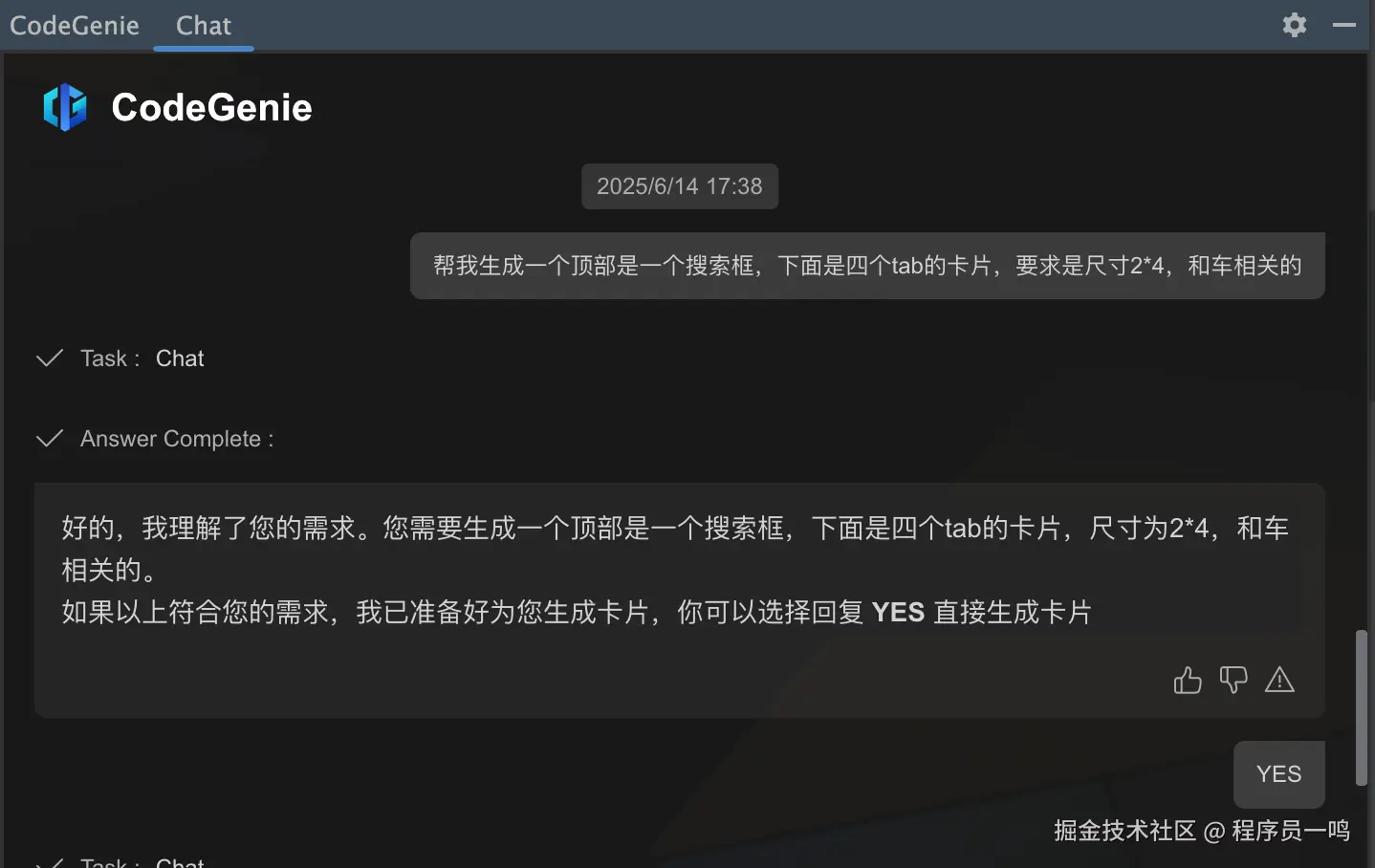 比如我简单的指令如下,在实际的调用中,指令尽量要详细一点,生成的才会更加的贴近我们想要的效果,它会进行二次确认,输入YES即可。