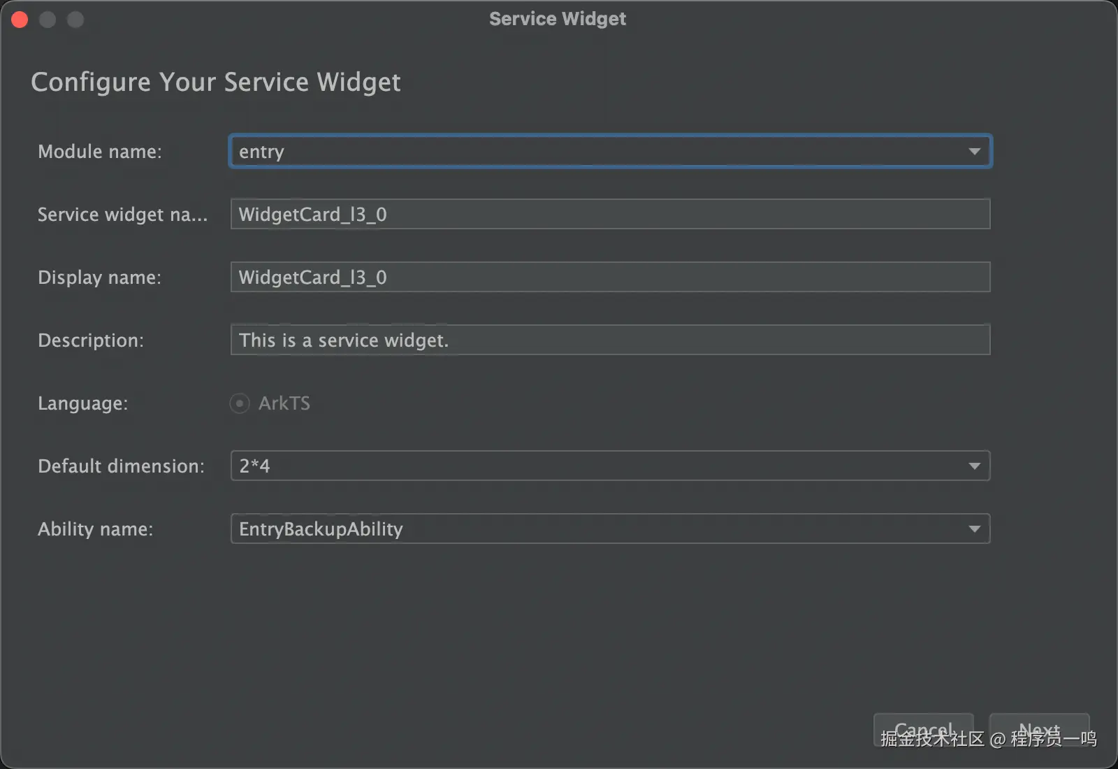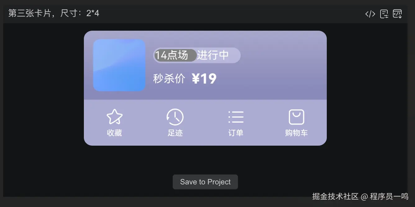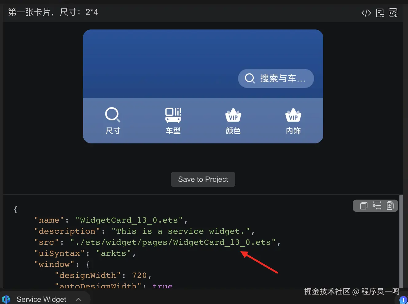 然后就生成一个服务卡片,手动生成的也是十分的简单,但是需要我们按照UI进行绘制视图,而CodeGenie中的万能卡片则不然,它会按照我们的指令,生成我们的样式,后期只需要简单更改便可以,相对来说,还是比较的便捷