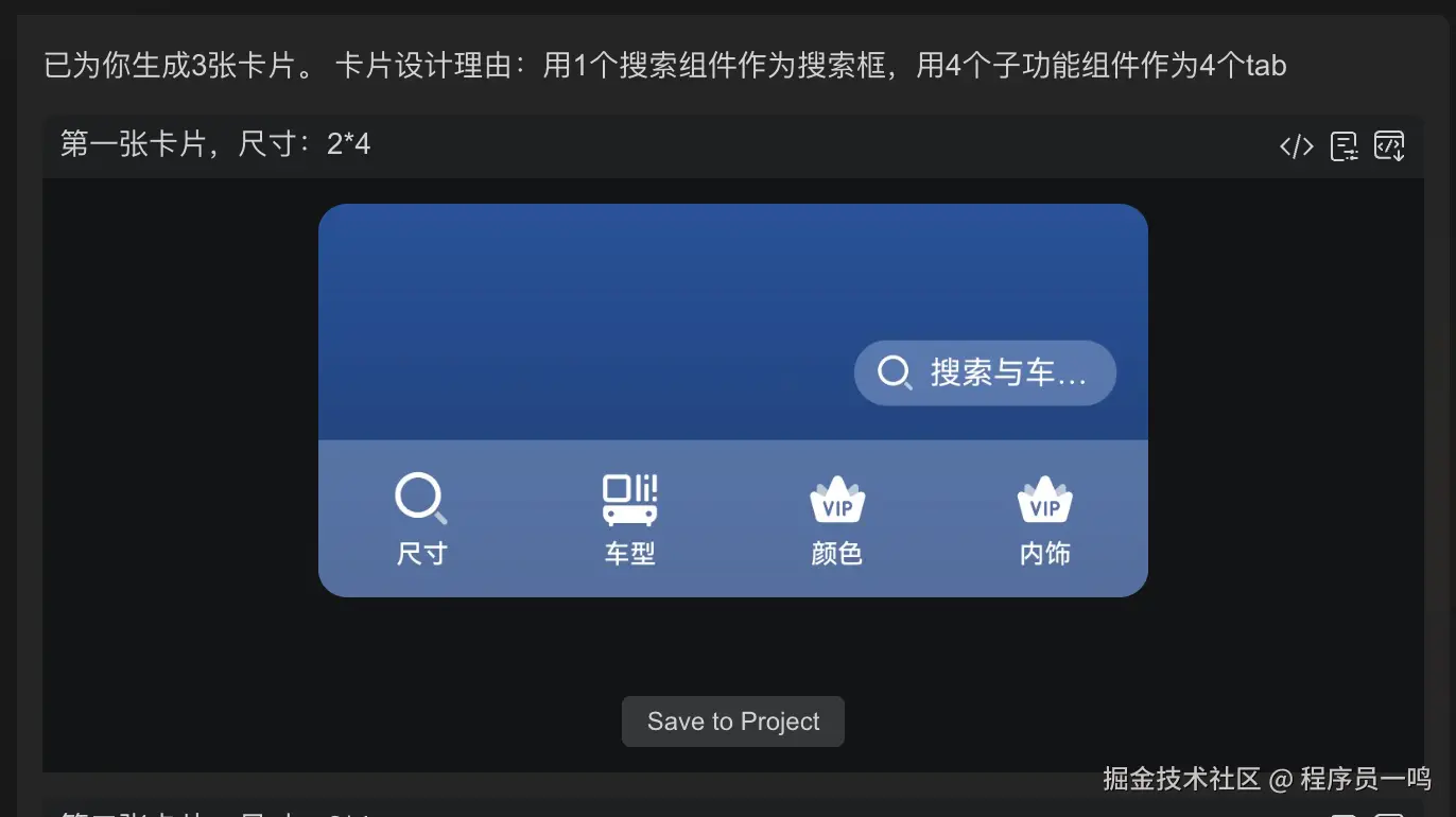 当然了,生成的不一定是百分之百符合我们的需求的,我们需要做的就是,不断的让AI自我调整,直至差不多的时候,我们就可以应用到我们的项目中,点击Save to Project按钮即可。