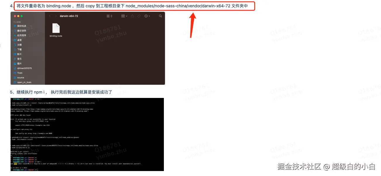 4、将文件重命名为 binding.node ,然后 copy 到工程根目录下 node_modules/node-sass-china/vendor/darwin-x64-72 文件夹中