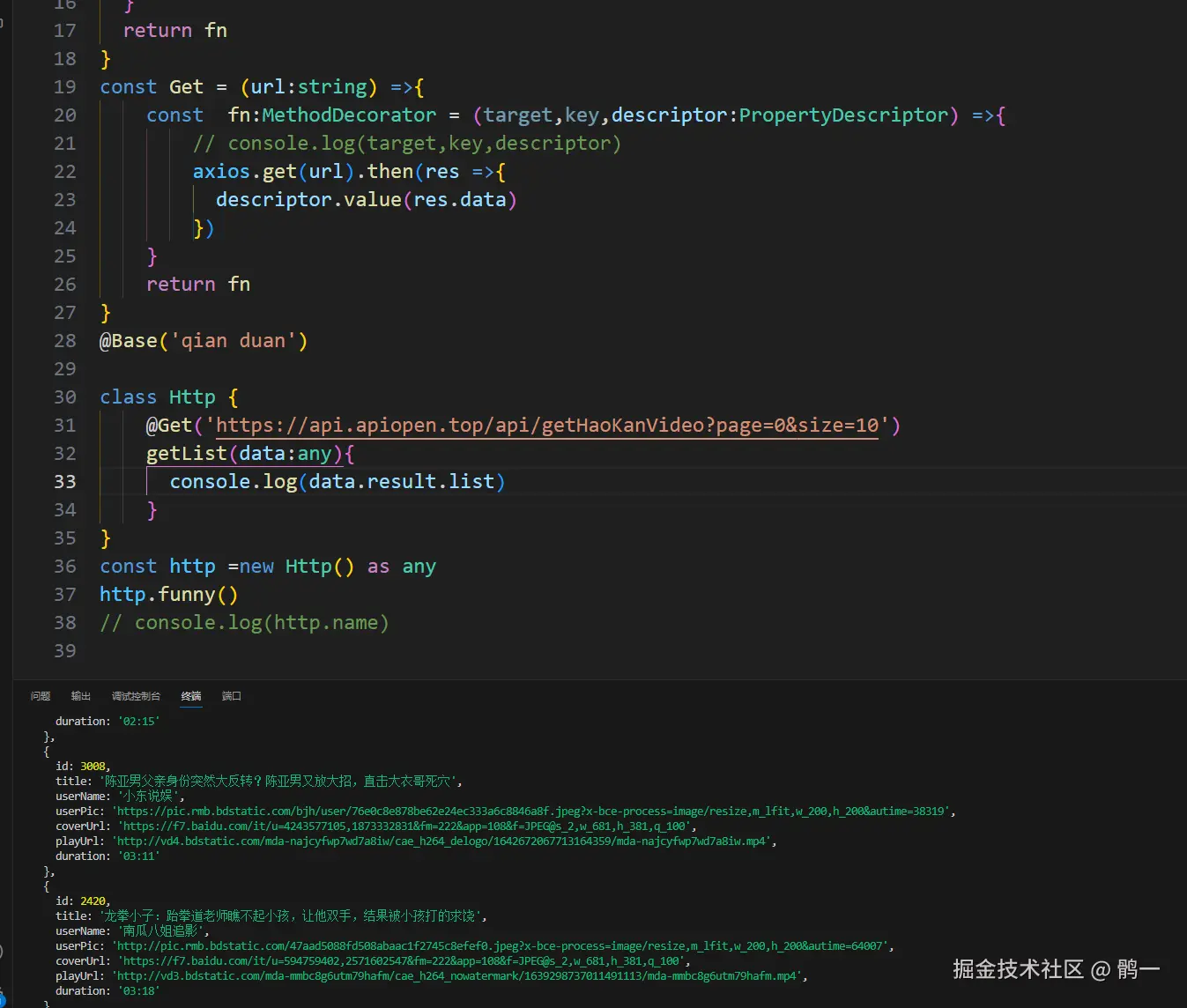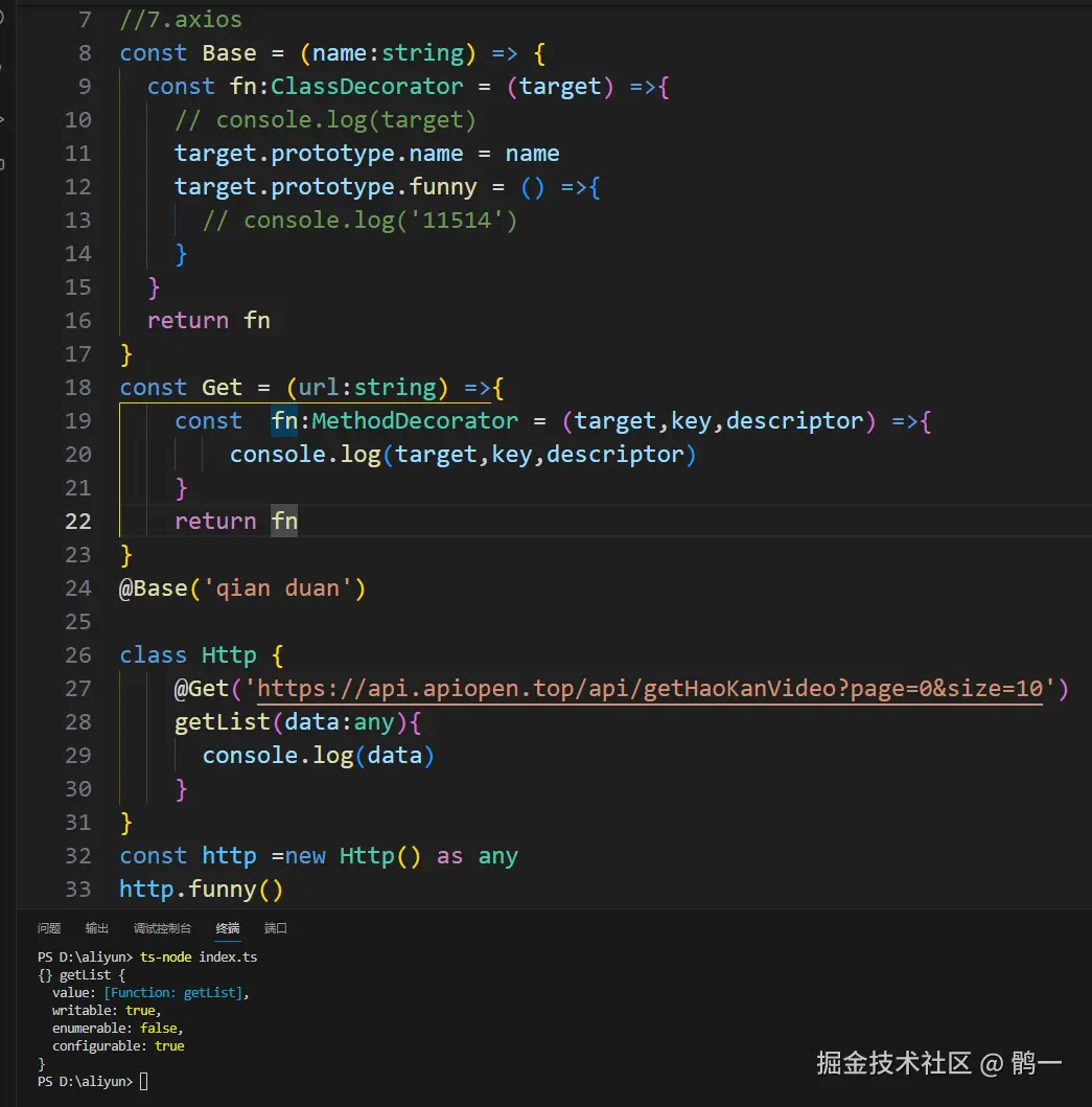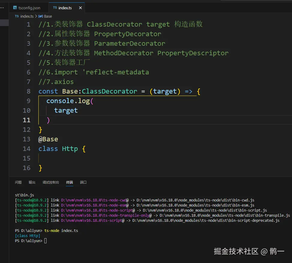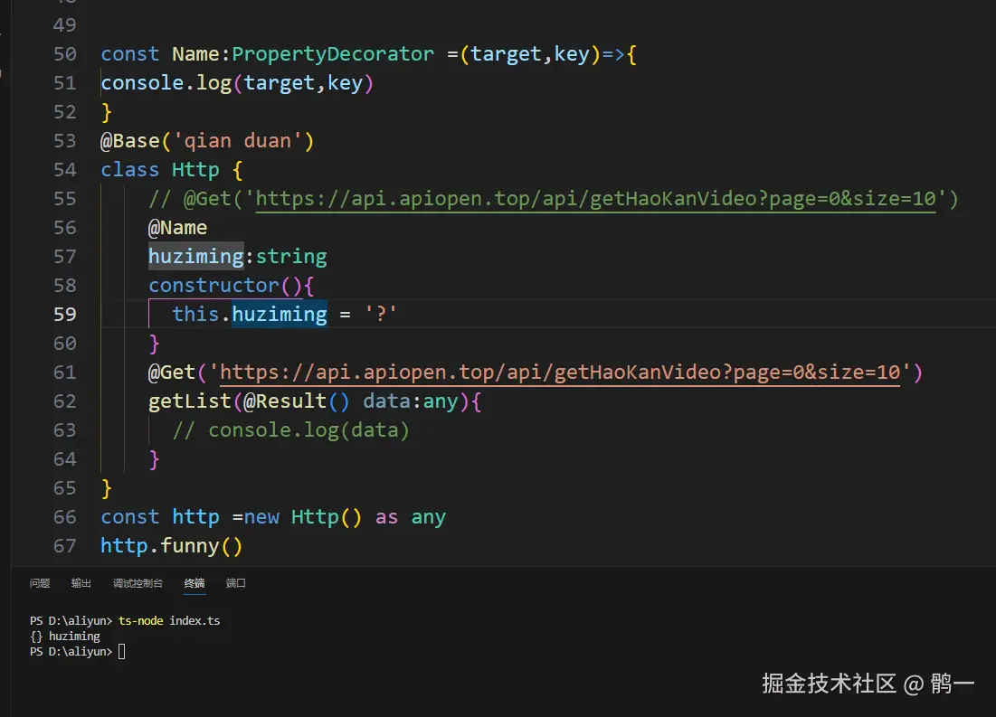 这是一个简单的函数,我们执行 ts-node index.ts 那么就可以读取到结果