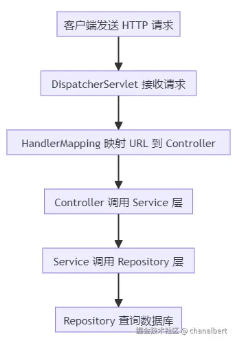 场景:用户发起 HTTP 请求 → Spring Web 模块接收请求 → 调用 Controller 处理业务逻辑。