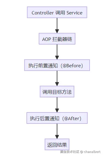 解决方案:引入 AOP(面向切面编程),通过拦截器链实现横切关注点管理。