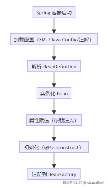 application.properties或 XML 配置文件,解析 Bean 定义(BeanDefinition)。 - 初始化