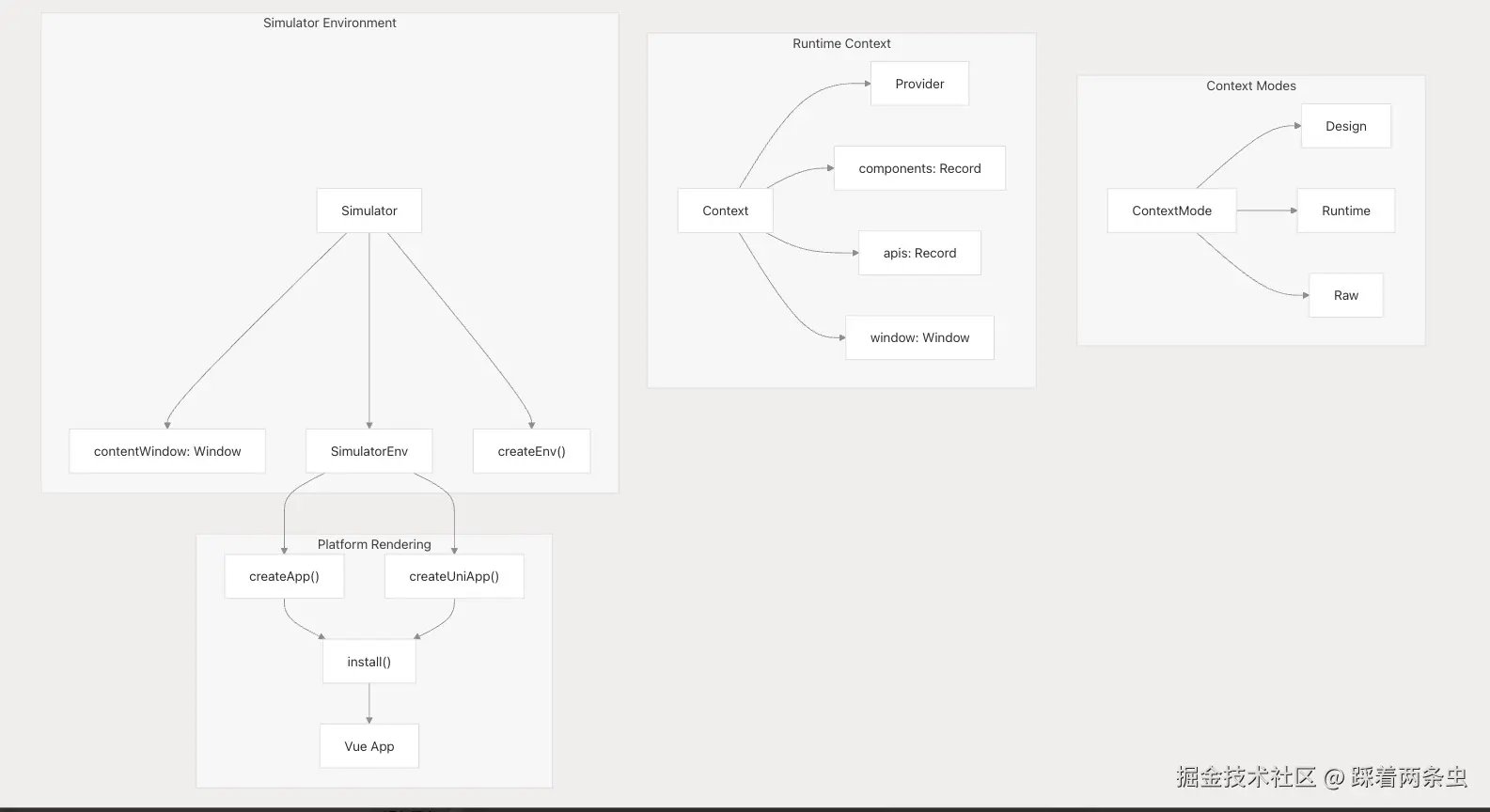 模拟器会创建一个隔离的 iframe 环境 (contentWindow),其中包含自己的 SimulatorEnv:
