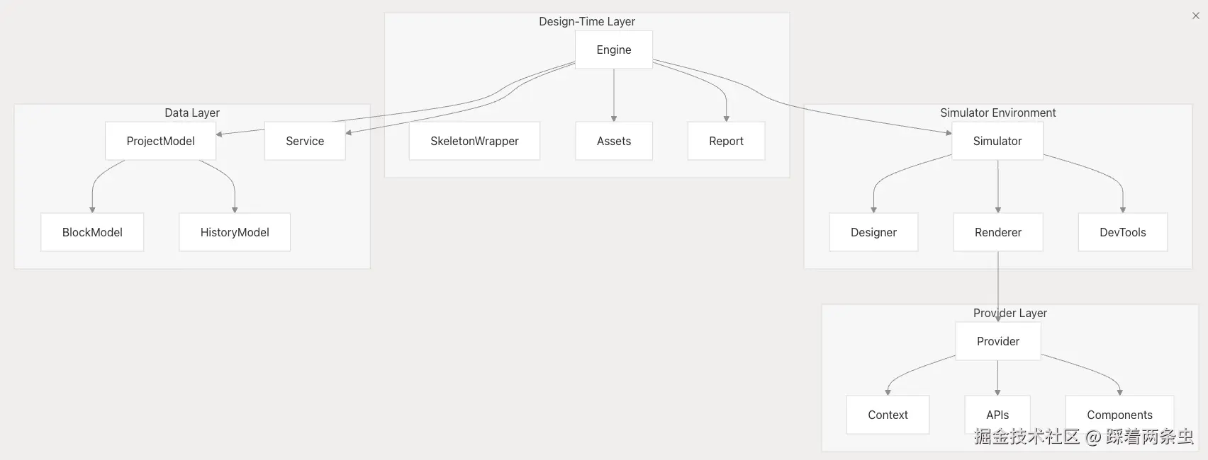 Service界面协调ProjectModel实例和文件操作 - 模拟器控制 :管理模拟器以进行基于 iframe 的组件渲染和预览