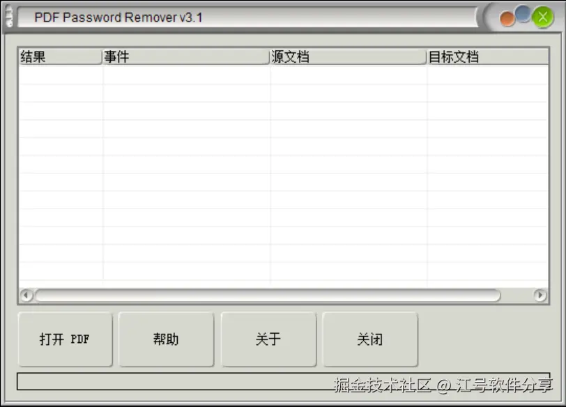 值得一提的是,该工具为绿色便携版,无需安装即可运行,界面简洁直观,不带任何广告插件,完全免费,非常适合有临时需求或经常需要处理加密 PDF 的用户使用。