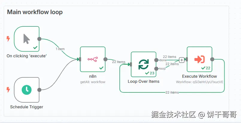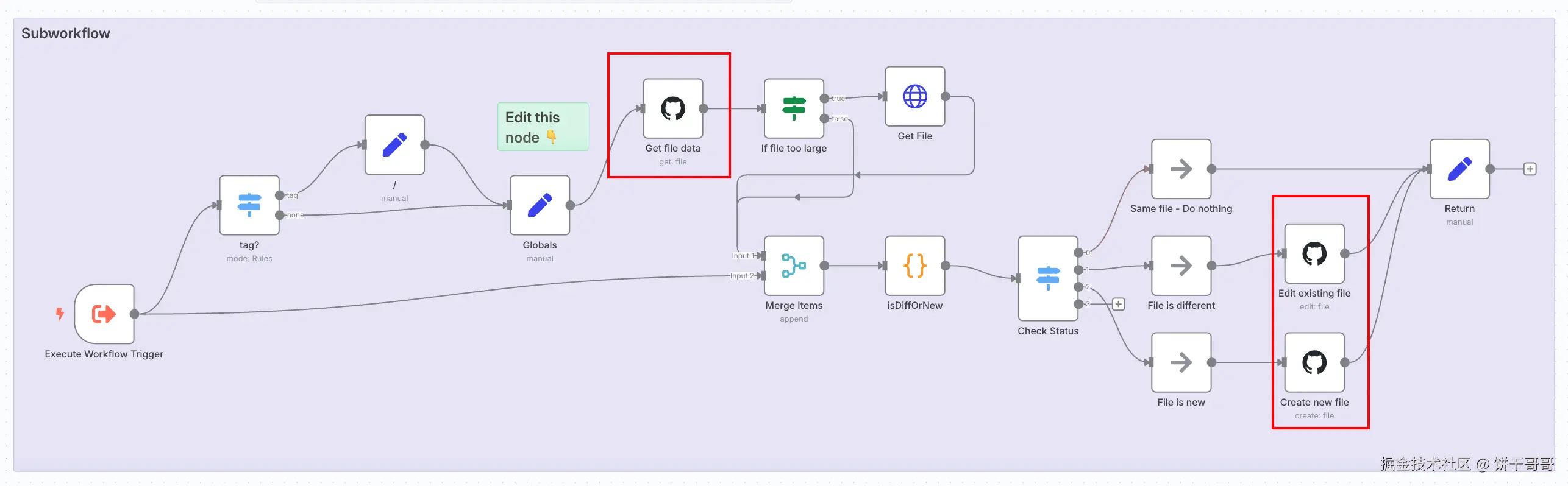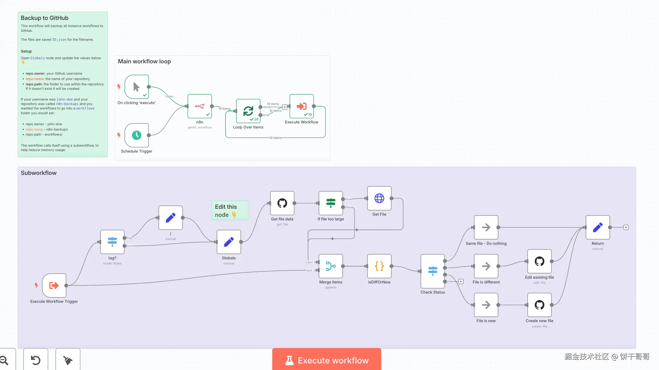 上面是主流程,它会读取我们n8n工作区的所有工作流,然后逐个同步到Github