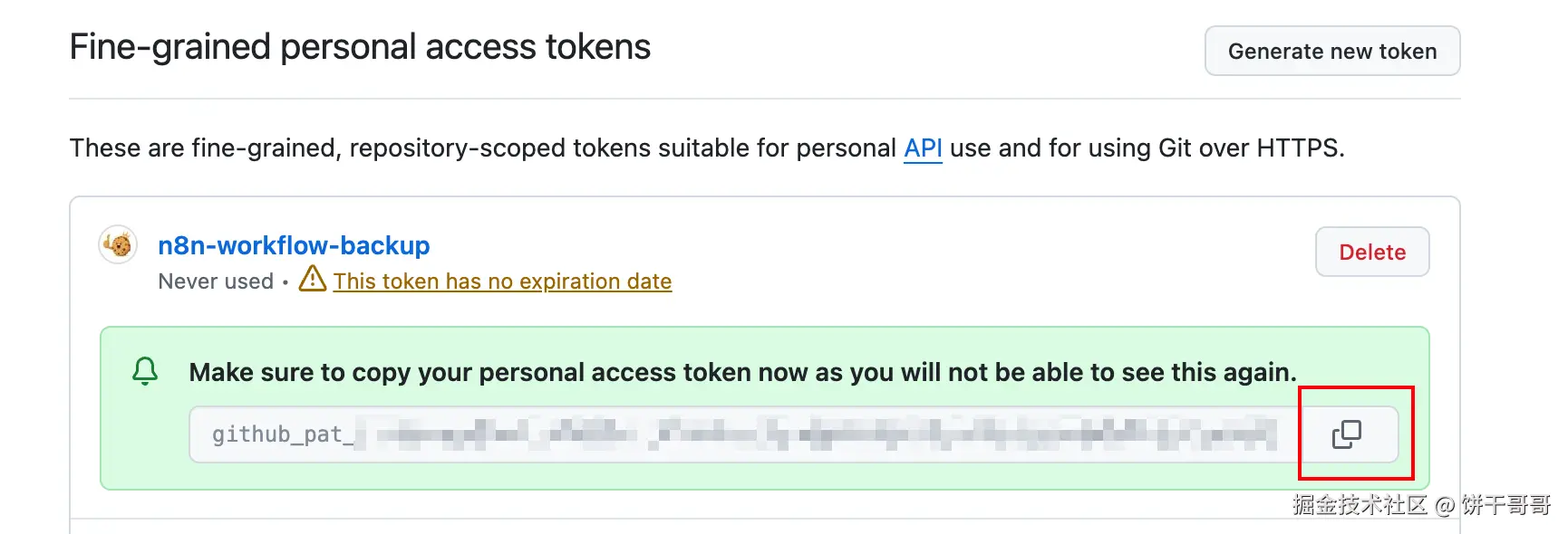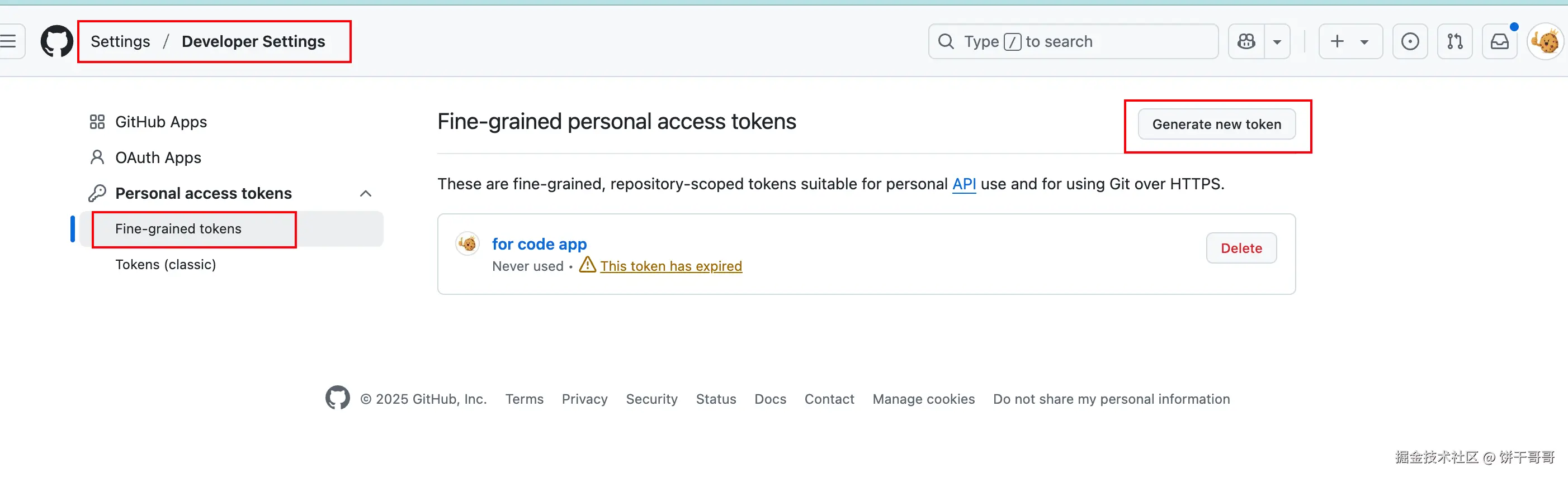 如下图,在Fine-grained tokens页面,创建tokenGenerate new token