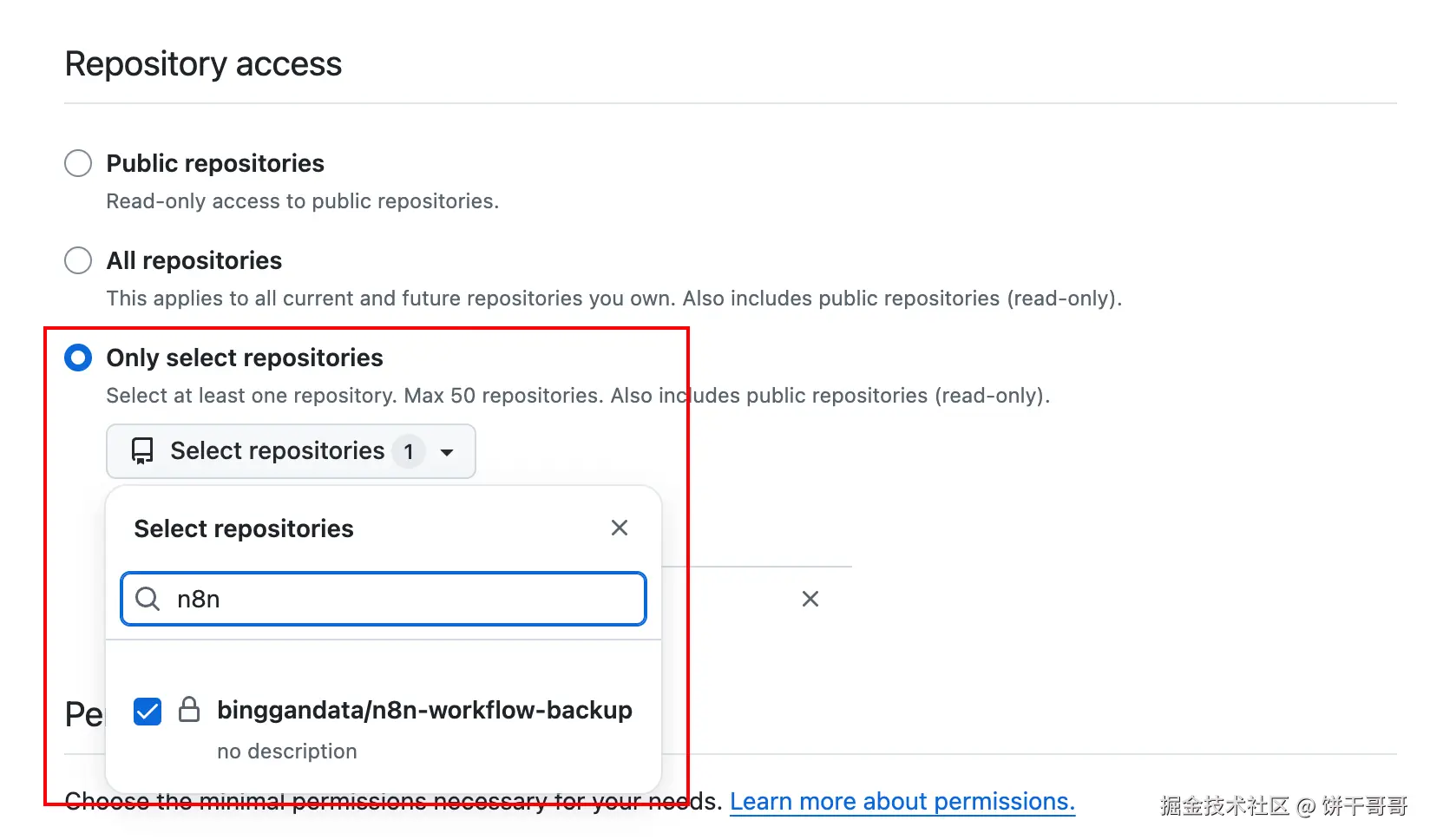选择Only select repositories,只对刚才我们新建的仓库生效