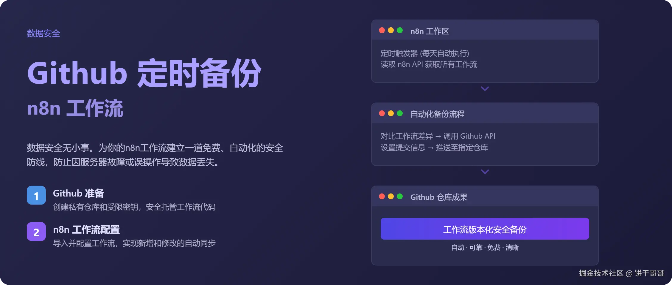 所以今天就分享一个用Github免费自动备份n8n的工作流, 先收藏转发保存起来,一定用得上。