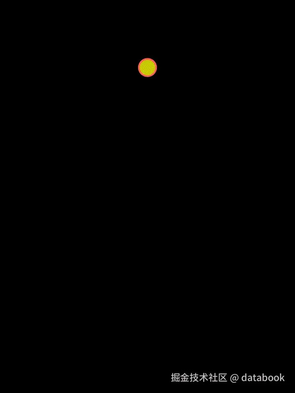 小球下落逐渐加速,模拟重力加速。