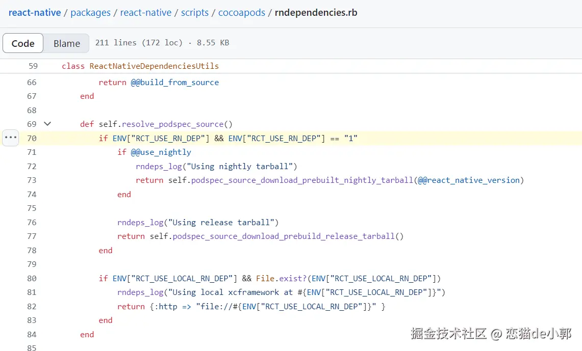 而由于这个功能目前处于实验阶段,因此默认情况下是未启用,如果想使用可以通过添加 RCT_USE_RN_DEP 环境变量来安装 pod:
