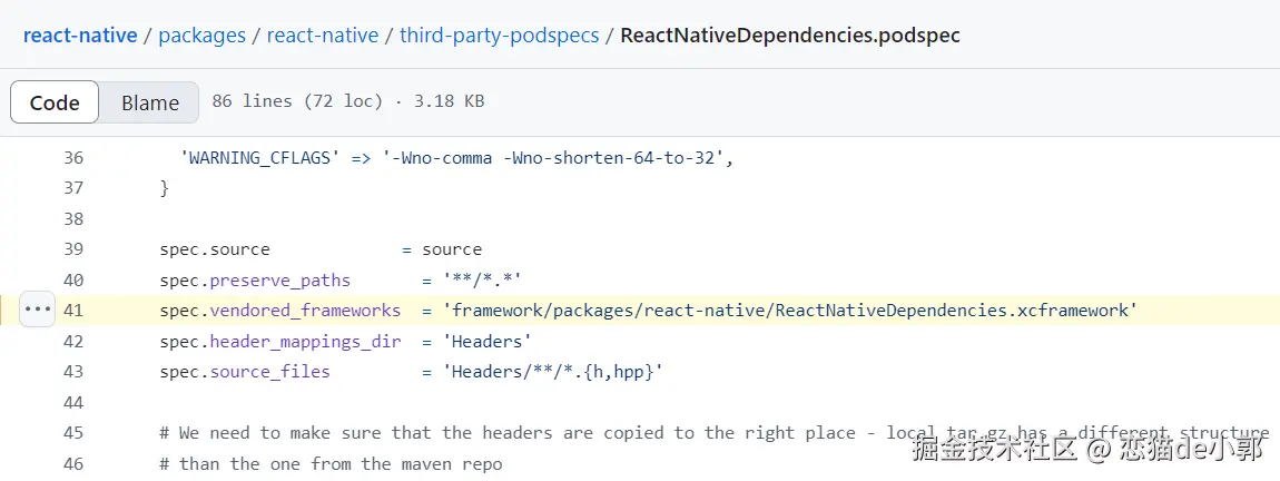 而如前面的代码所示,在 React Native 发布过程中,会有一个 ReactNativeDependencies.xcframework 的 XCFramework,它是 React Native 所依赖的第三方依赖项的预构建版本,而在 Xcode 执行编译链接时,它会直接链接这些已经编译好的 XCFrameworks。